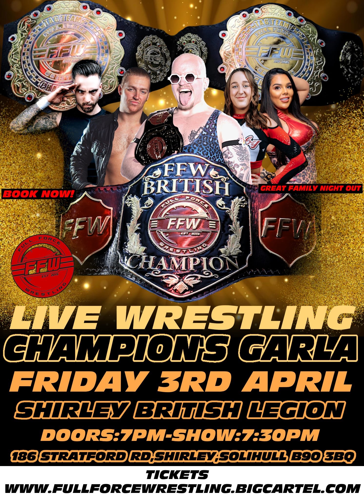 Full Force Wrestling returns to Shirley Royal British Legion on Friday 3rd April 2026! And every Match will be for a Championship