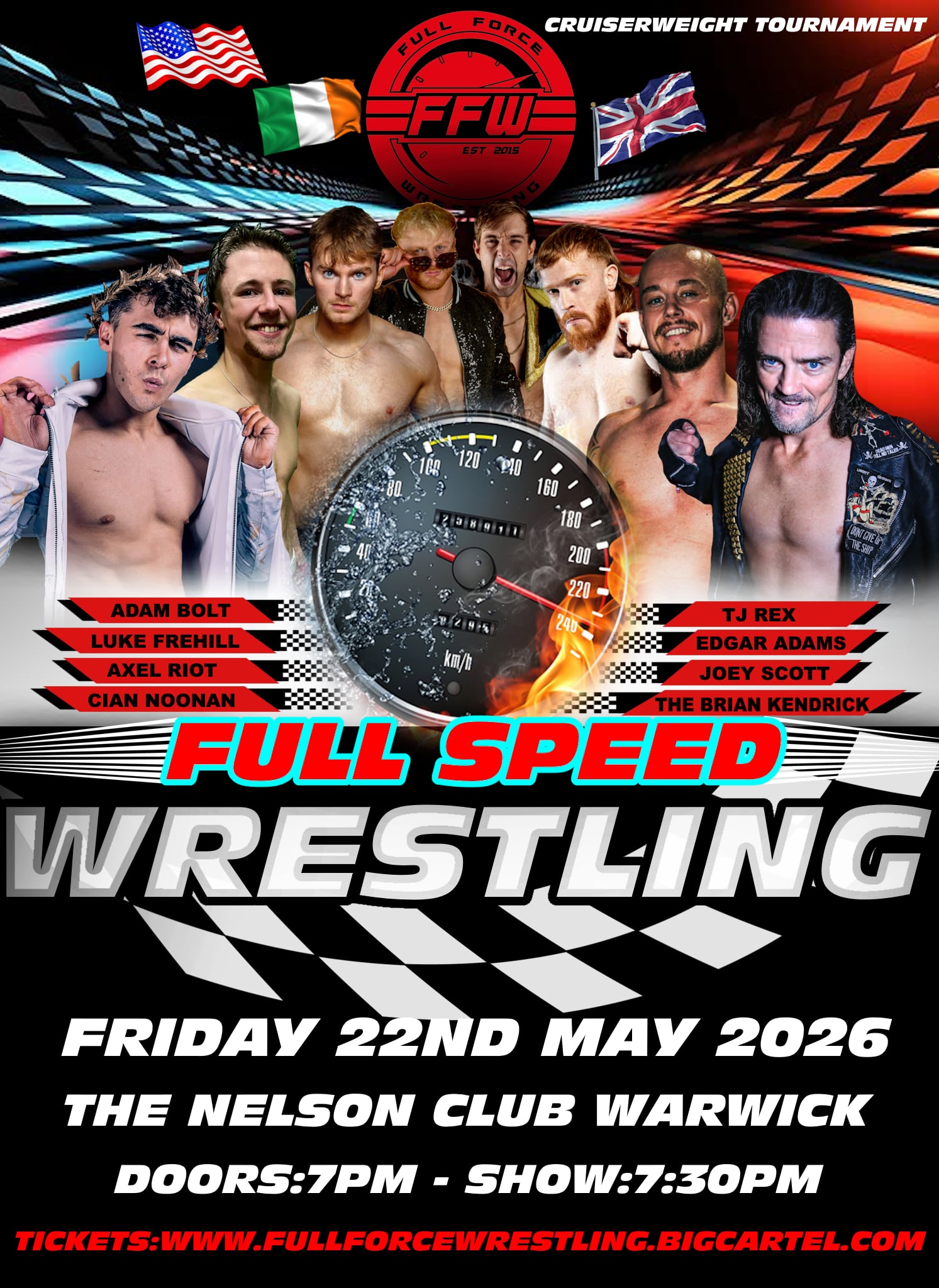 Full Force Wrestling returns to the Nelson Club Warwick for a Cruiserweight special Tournament show! Please note that tickets are not dispatched your booking name will be added to our database